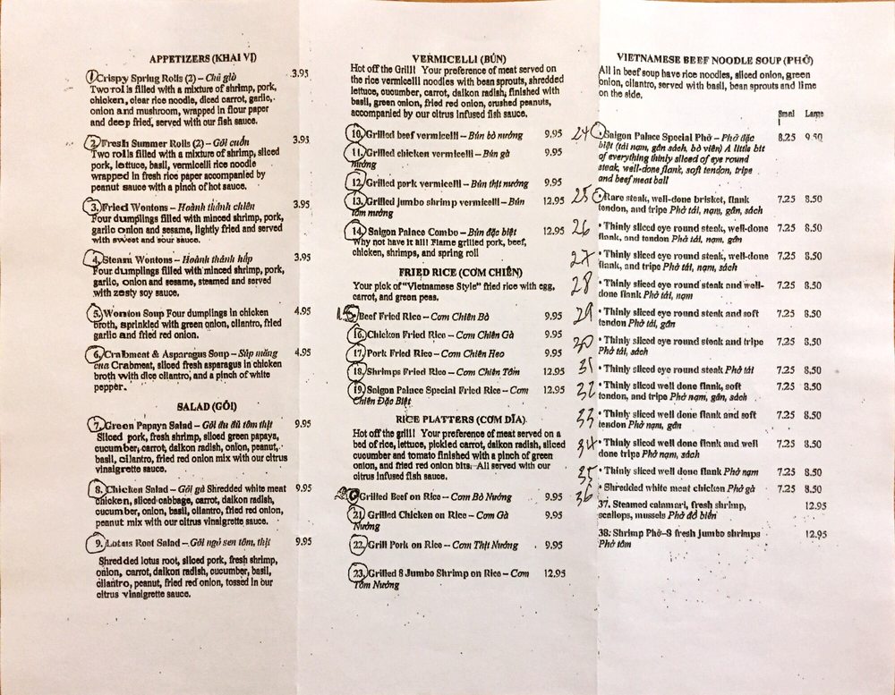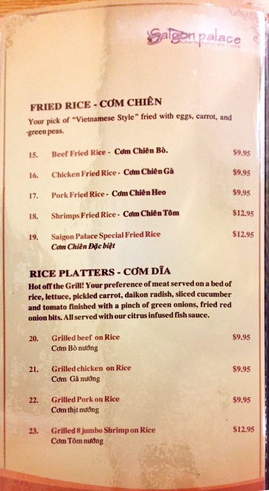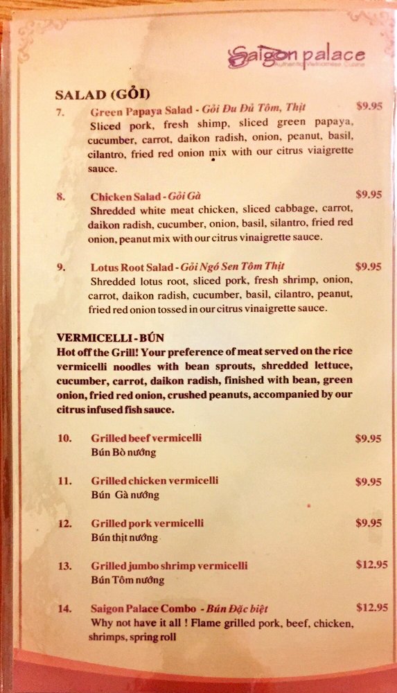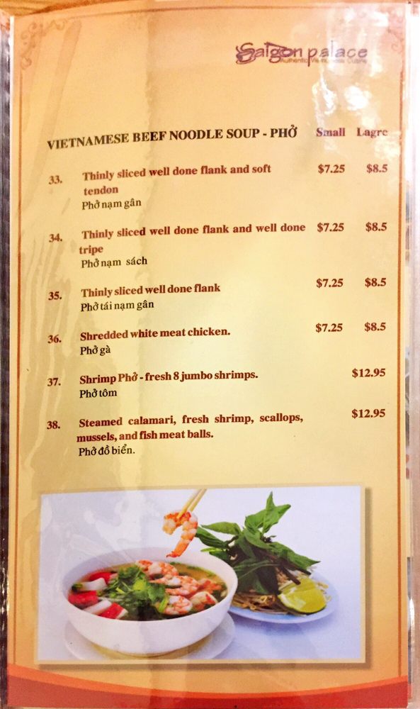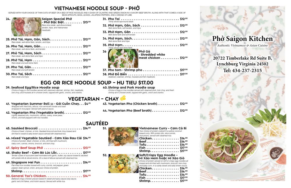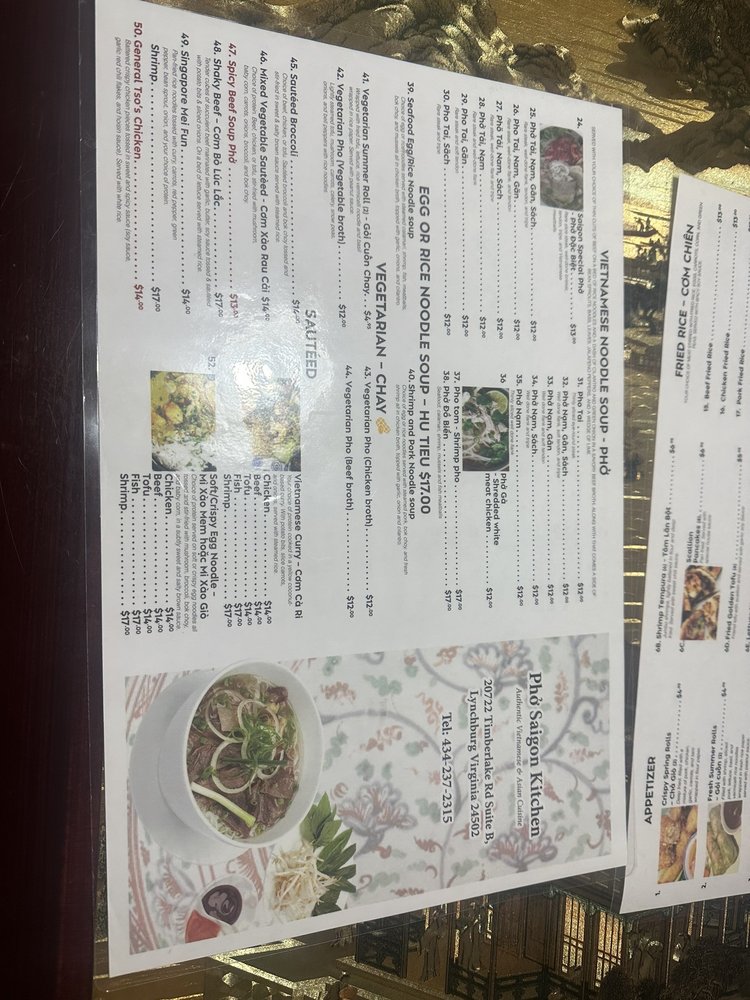Pho Saigon Kitchen Menu